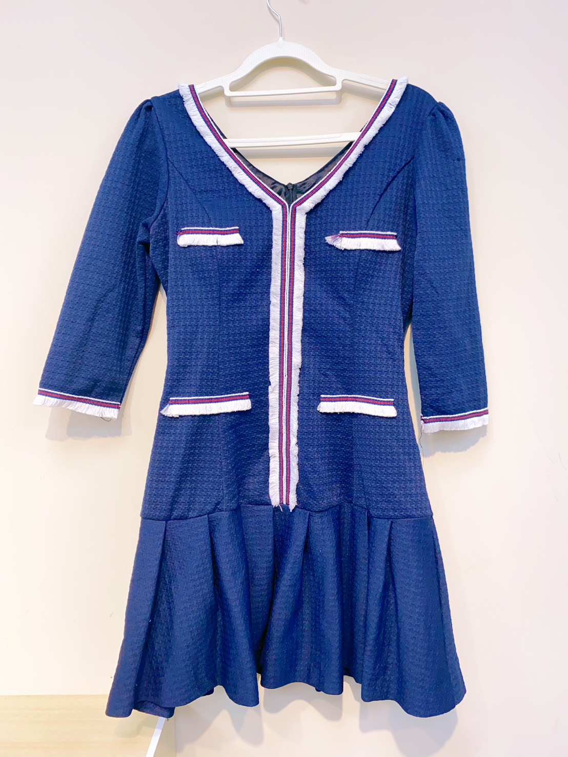 福利-藍色V領洋裝裙