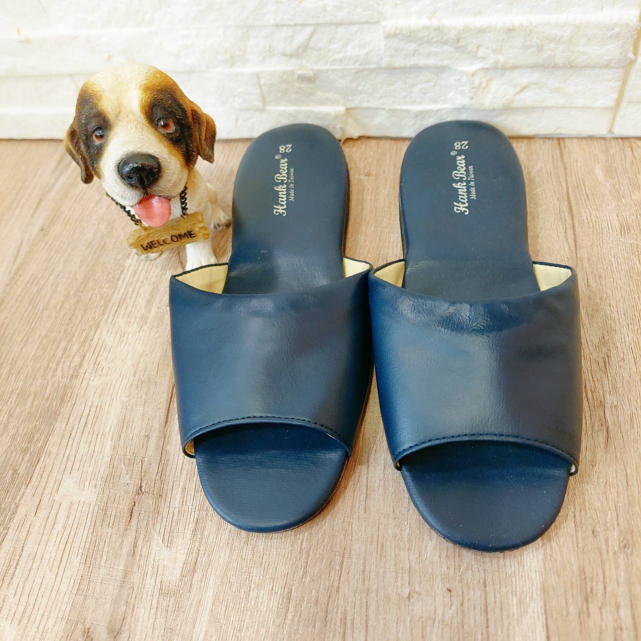 深藍色皮革室內拖鞋
